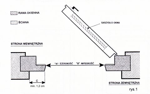 1. Wykonujemy pomiar szerokości i wysokości ramy okiennej w zaznaczonych miejscach. (patrz rys. 1)